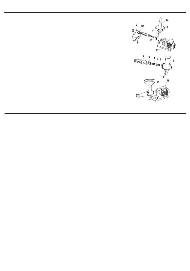 Remove the slide (8) and unfasten the lter (7), lubricate the worm (6) with a little olive oil and assemble the