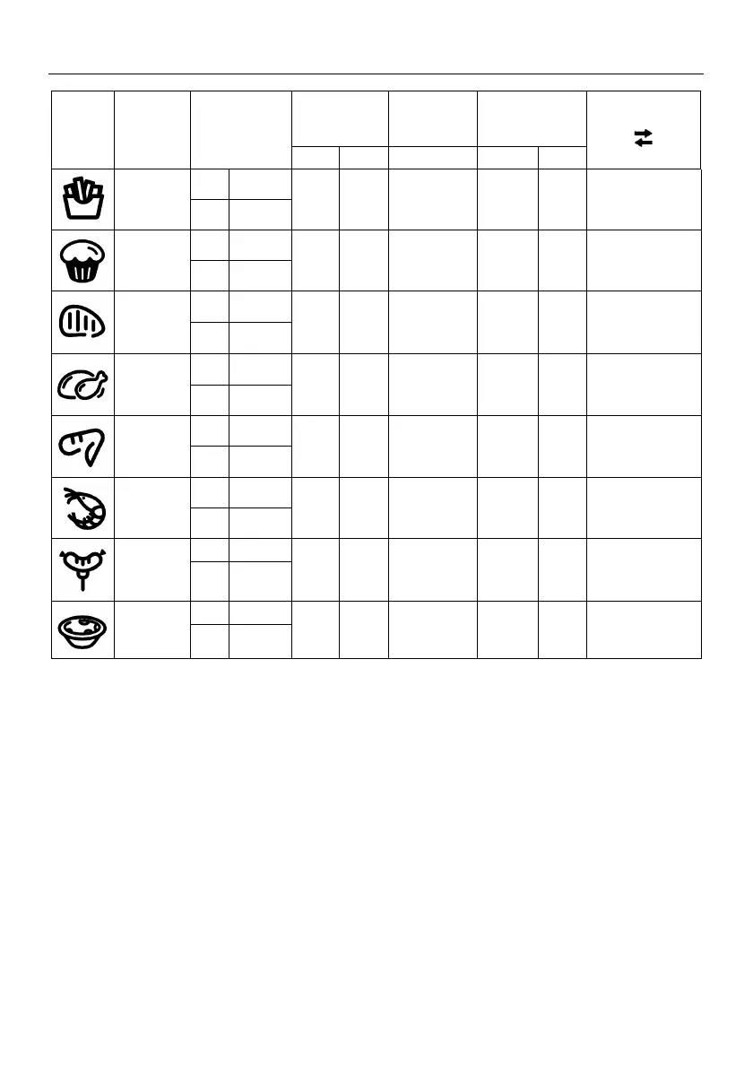 (note 1) If starting to cook when the fryer is cold, add 3 minutes to the cooking time