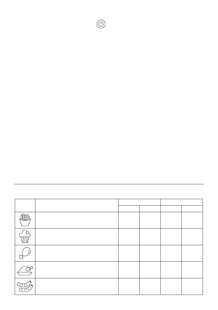 NOTE: some types of food require stirring or flipping halfway through cooking. In this case, remove