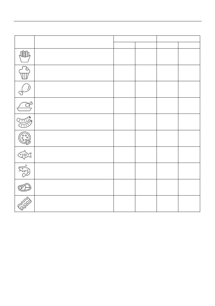 (note 1) Si vous commencez la cuisson lorsque la friteuse est froide, ajoutez 3 minutes au temps de