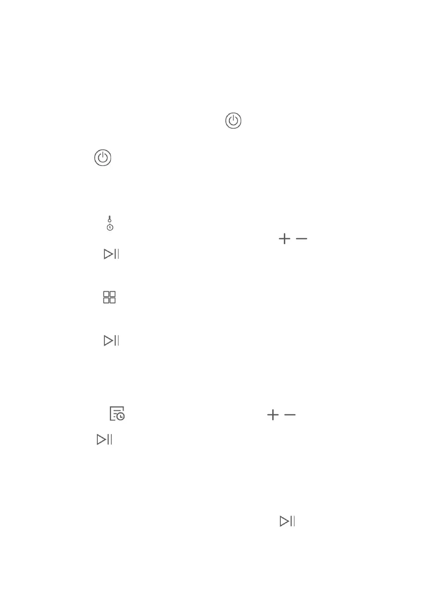 alla temperatura o al tempo si illumina sull’icona (8). Utlizzare i tasti per regolare i valori.