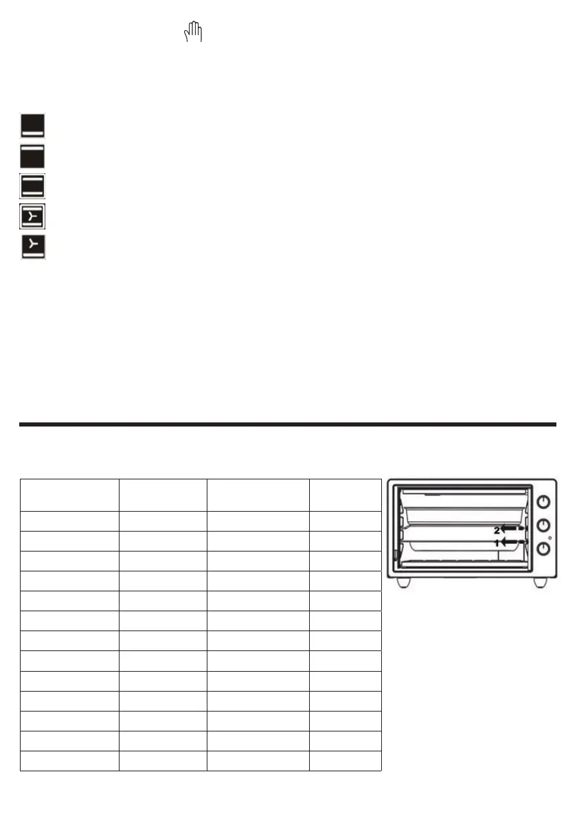rotate the knob of selecting function to “heating below” icon. Preheat the oven for about 10 minutes.