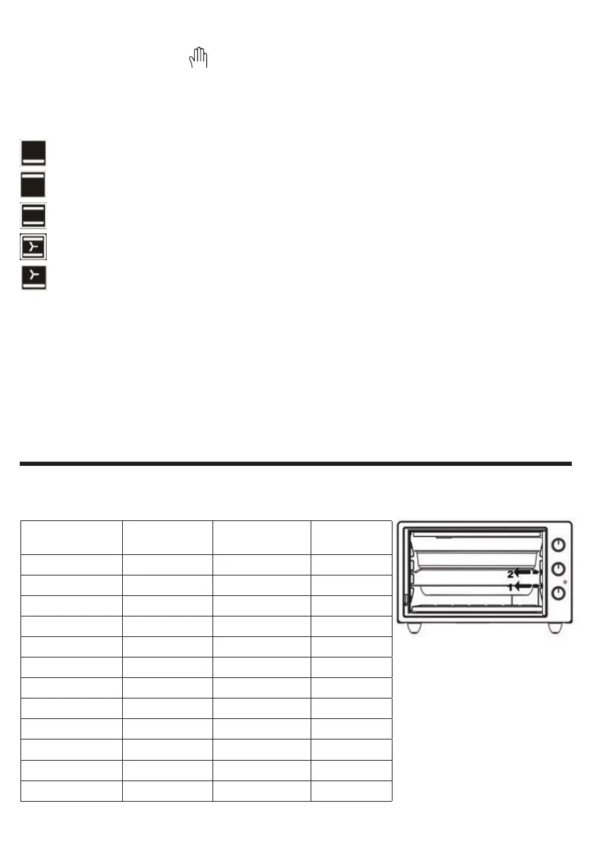 rotate the knob of selecting function to “heating below” icon. Preheat the oven for about 10 minutes.