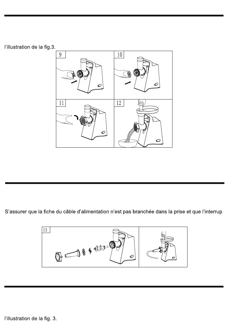 Positionner la lame (9) en ayant soin de diriger la partie aiguisée vers l’extérieur sous peine d’un