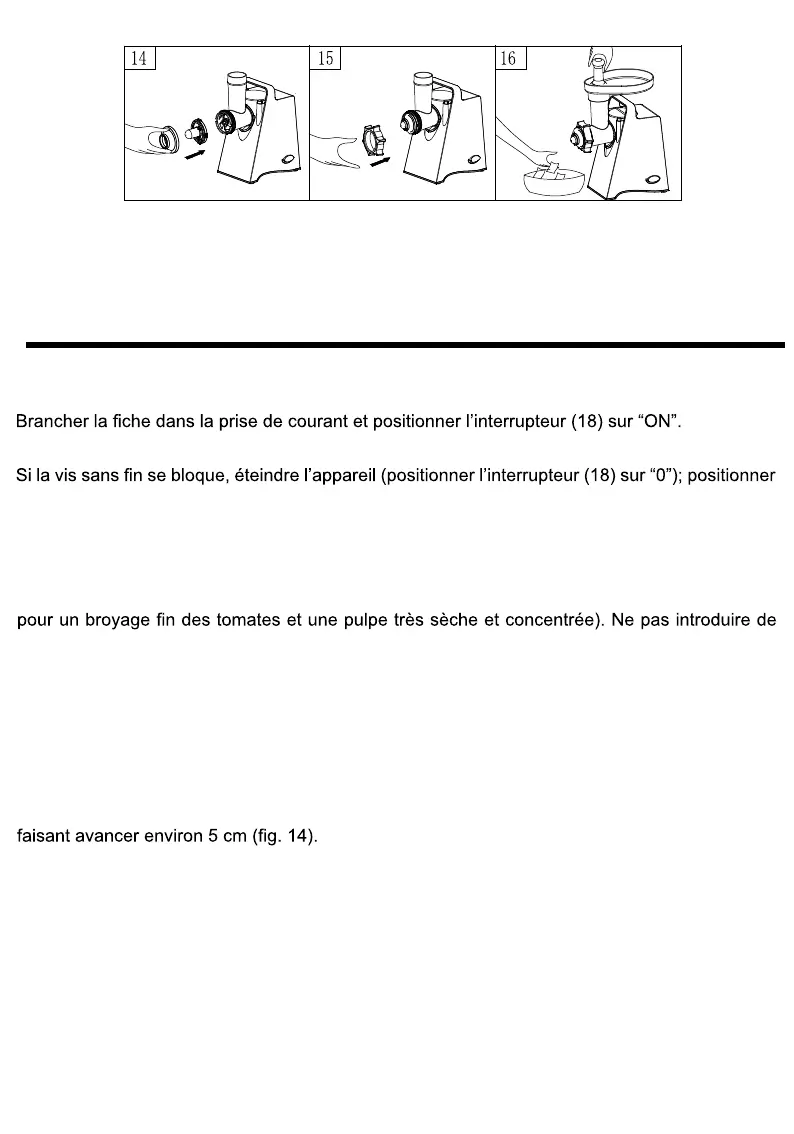 Placer les aliments sur le plateau (4) et les introduire dans la goulotte d’alimentation avec le