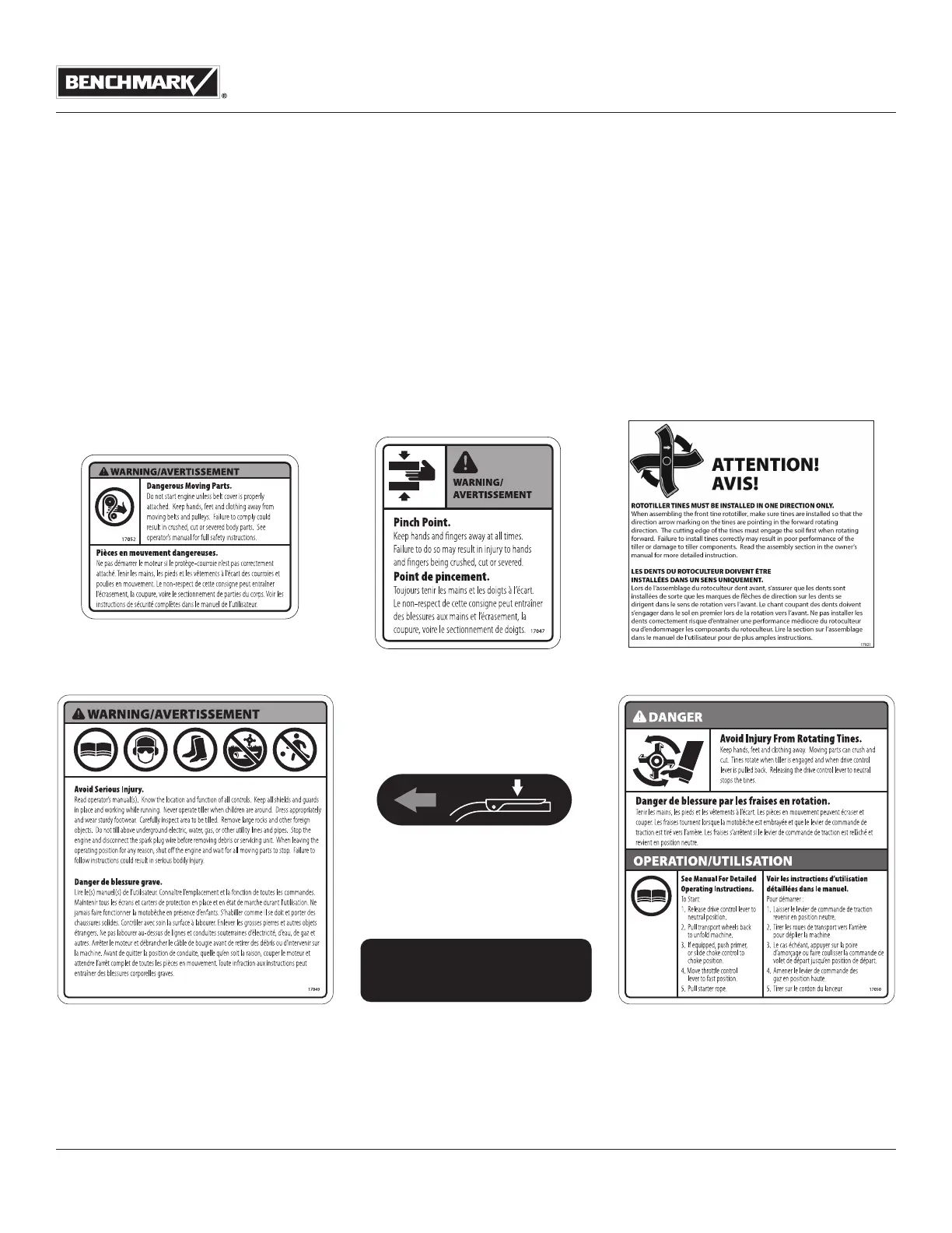 safety messages you will see as you perform normal tilling operations. Please review these decals now, and if you have any questions