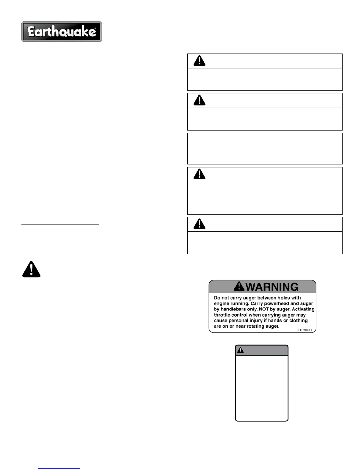 Accurate assembly and safe, eective use of the auger is the owner’s
