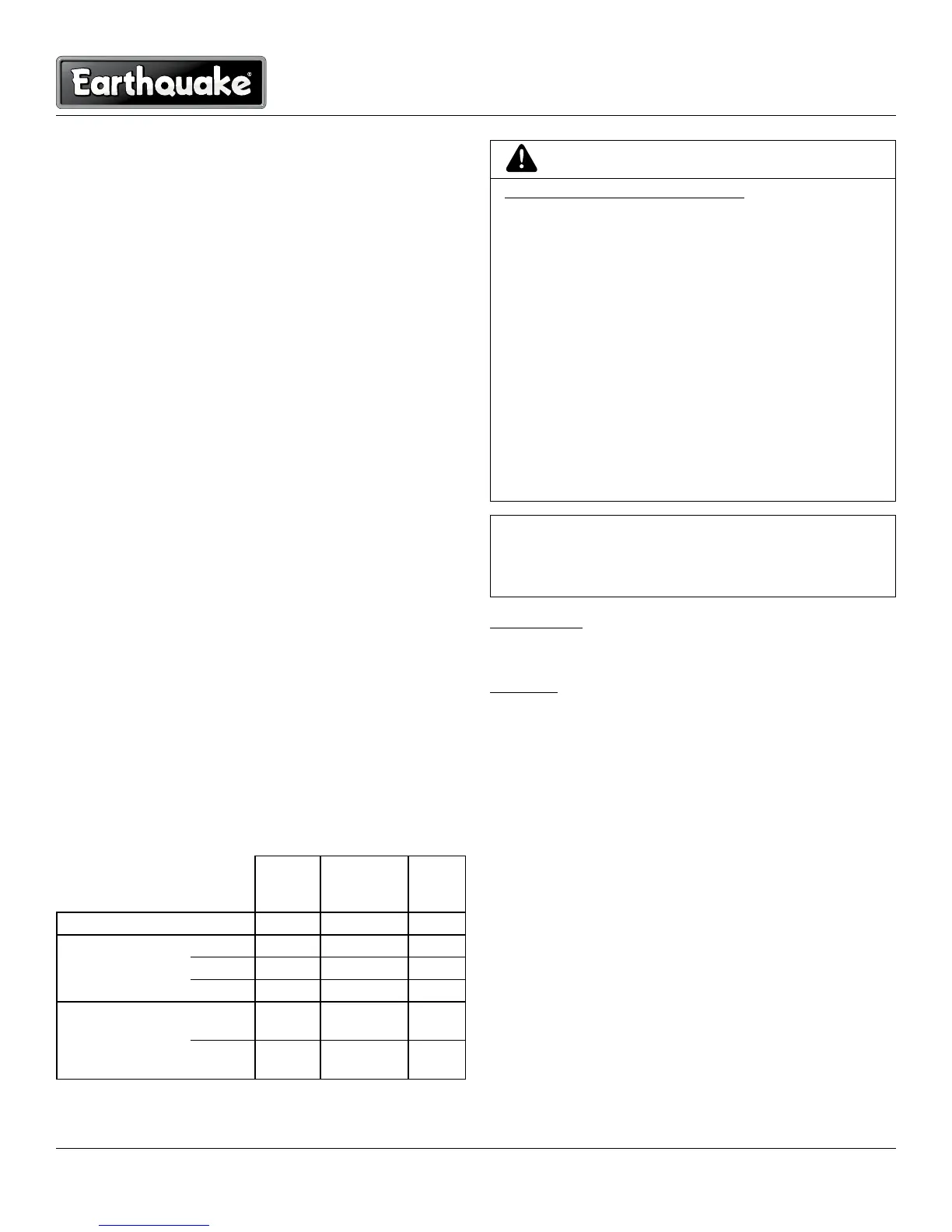Check for parts online at www.getearthquake.com or call 800-345-6007 M-F 8-5 9