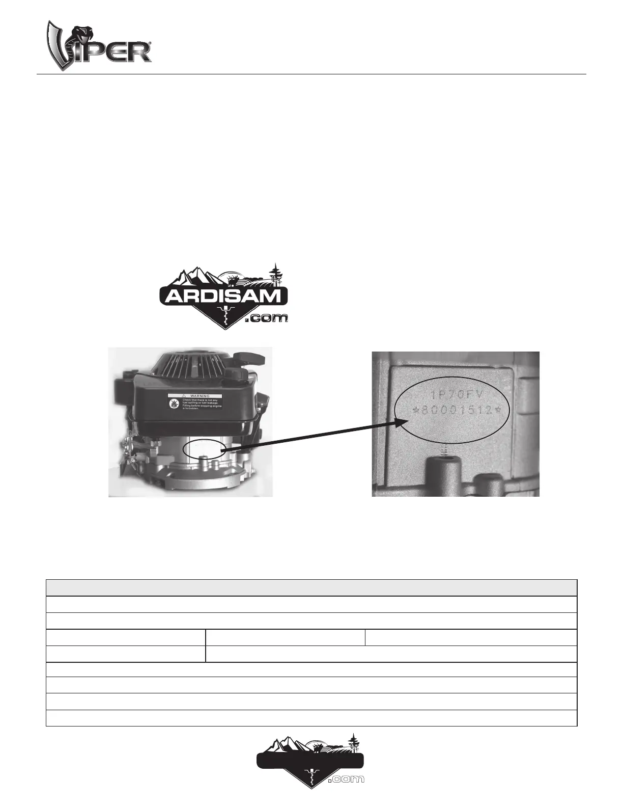 packet or register online at www.ardisam.com. The Engine Serial Number is located under the fuel tank.
