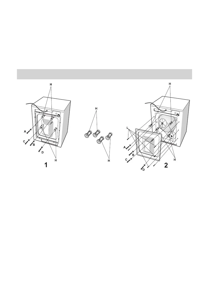 ➘ Wprzypadku kiedy tulejki pozostaną wewnątrz pralki, odkręcając śruby oznaczone na