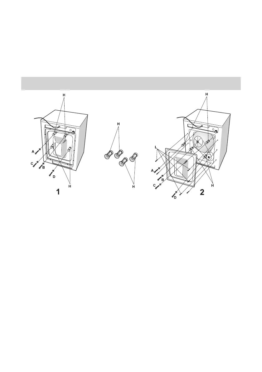 ➘ V případě, kdyby zůstaly v pračce, vyjmout je po uvolnění šroubů označených na