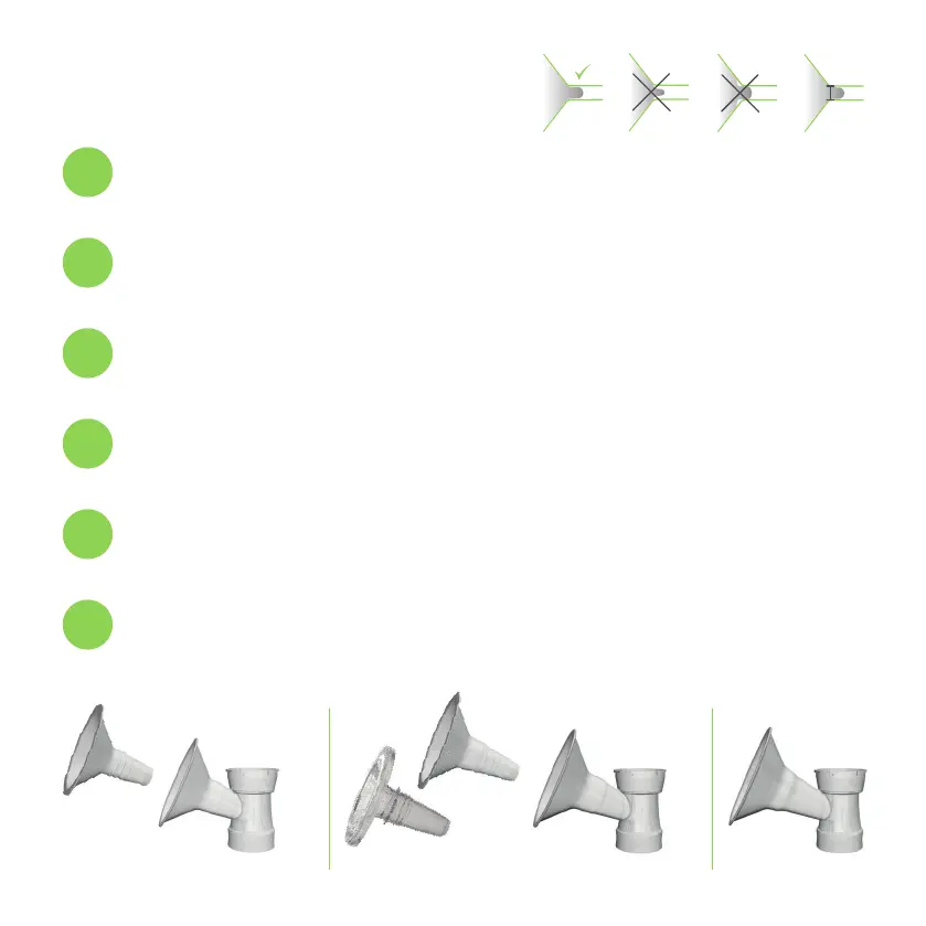• lorsque le mamelon se déplace librement dans l’entonnoir et peut suivre les mouvements rythmiques du tire-lait.