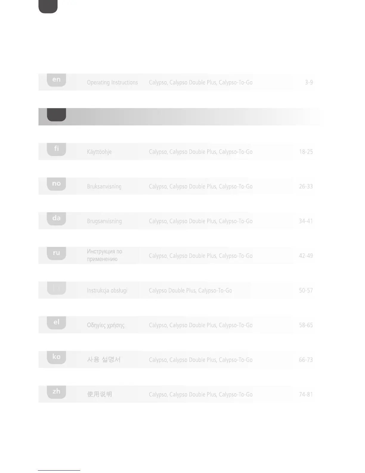 Bruksanvisning Calypso, Calypso Double Plus, Calypso-To-Go 10-17