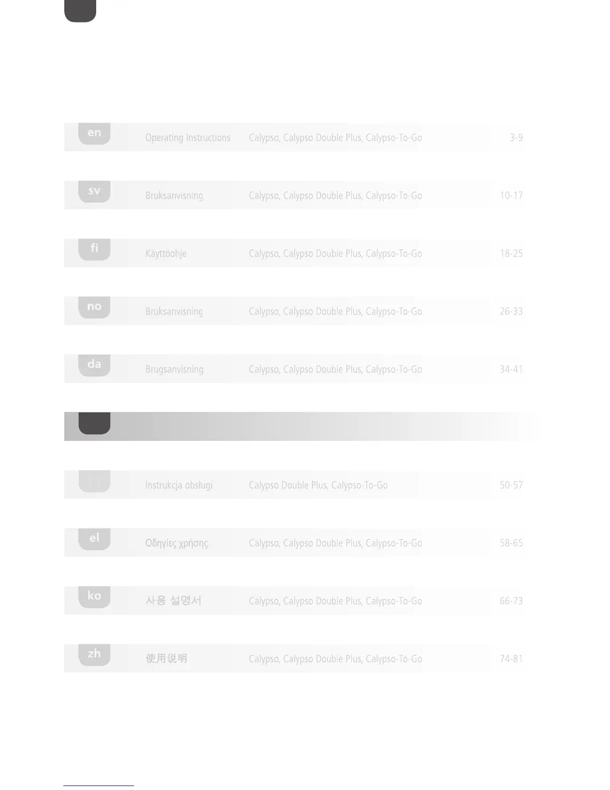 Calypso, Calypso Double Plus, Calypso-To-Go 42-49