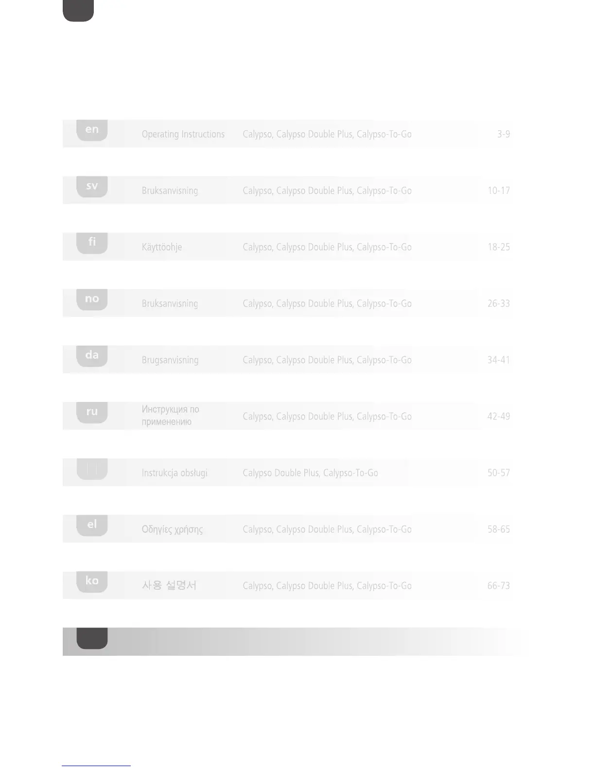 Calypso, Calypso Double Plus, Calypso-To-Go 74-81