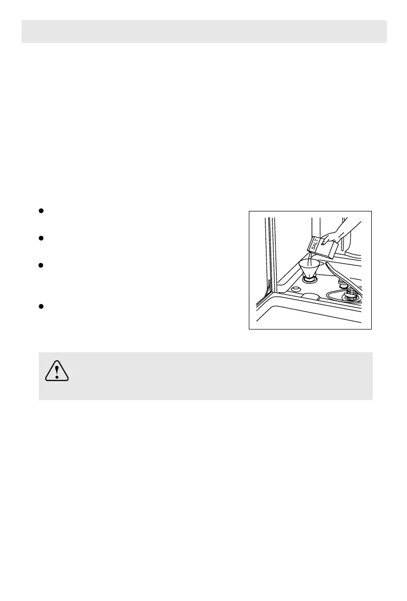 The salt container is located beneath the lower rack and should be lled as follows: