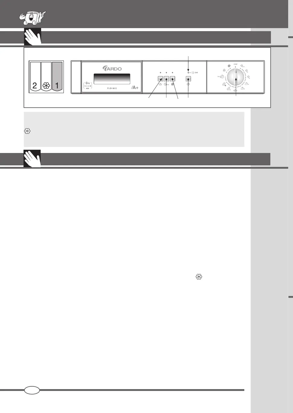 5. Sélectionner le programme de lavage adapté au type de tissus avec la manette I en suivant les