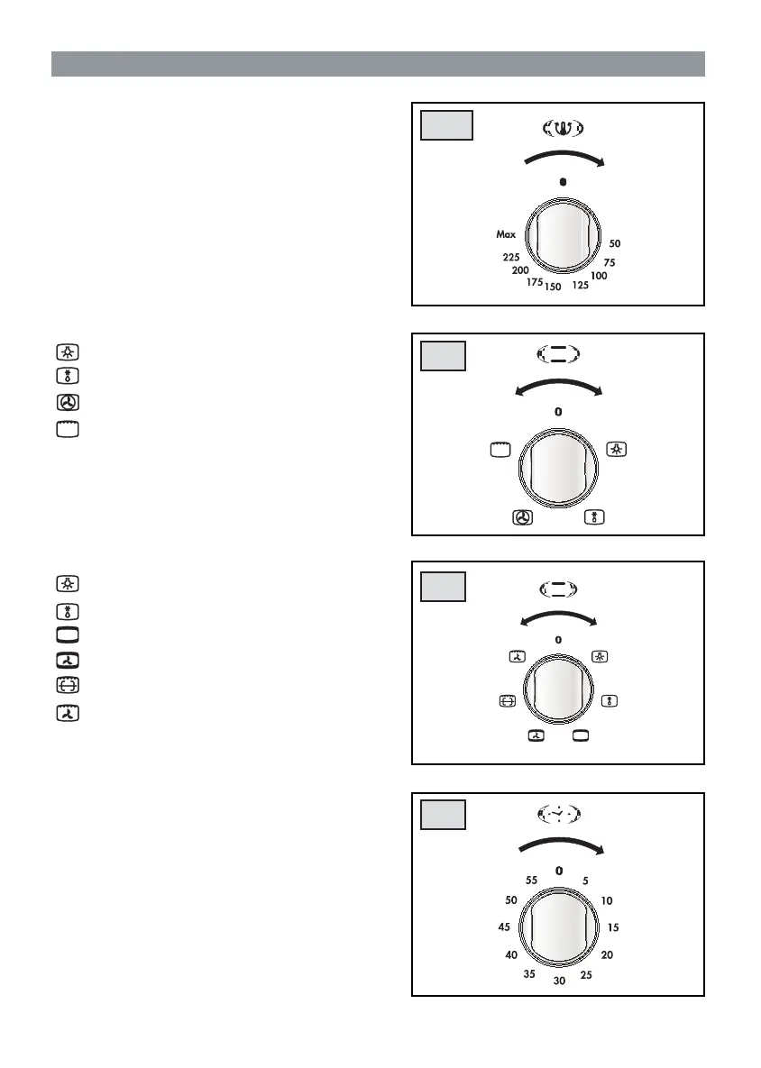 Turning the oven knob clockwise selects and sets the
