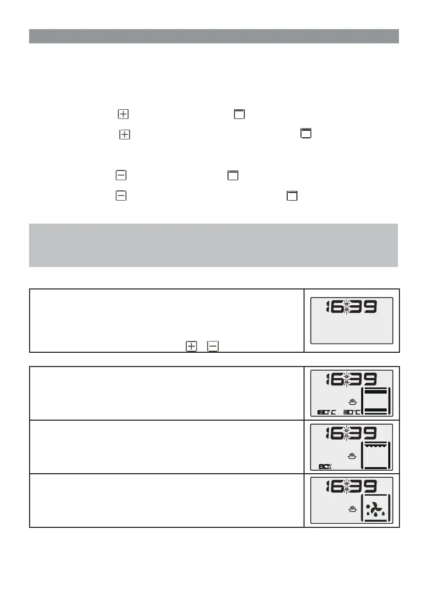 Jestliže zvolíte rozmrazovací program, zobrazí se pouze hodiny a symbol