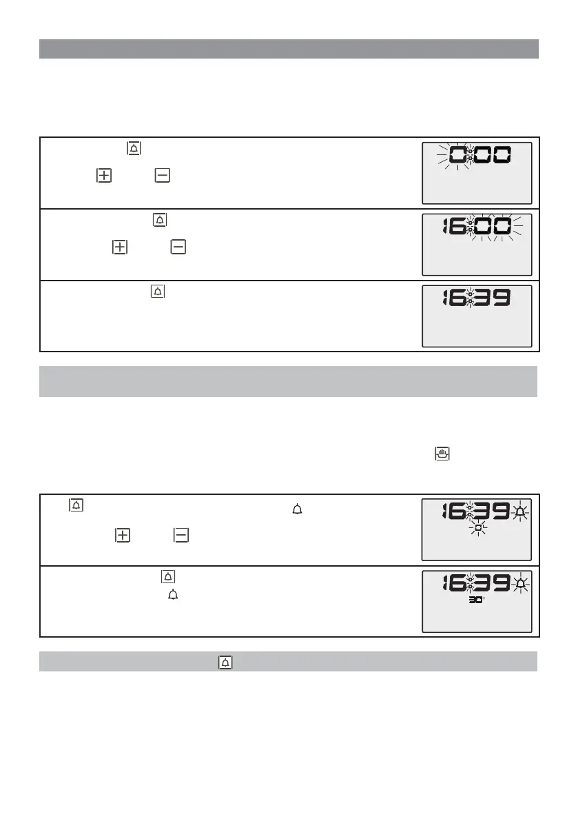 számjegyek villogása automatikusan befejeződik és kilépünk az ÓRABEÁLLÍTÁS módból.