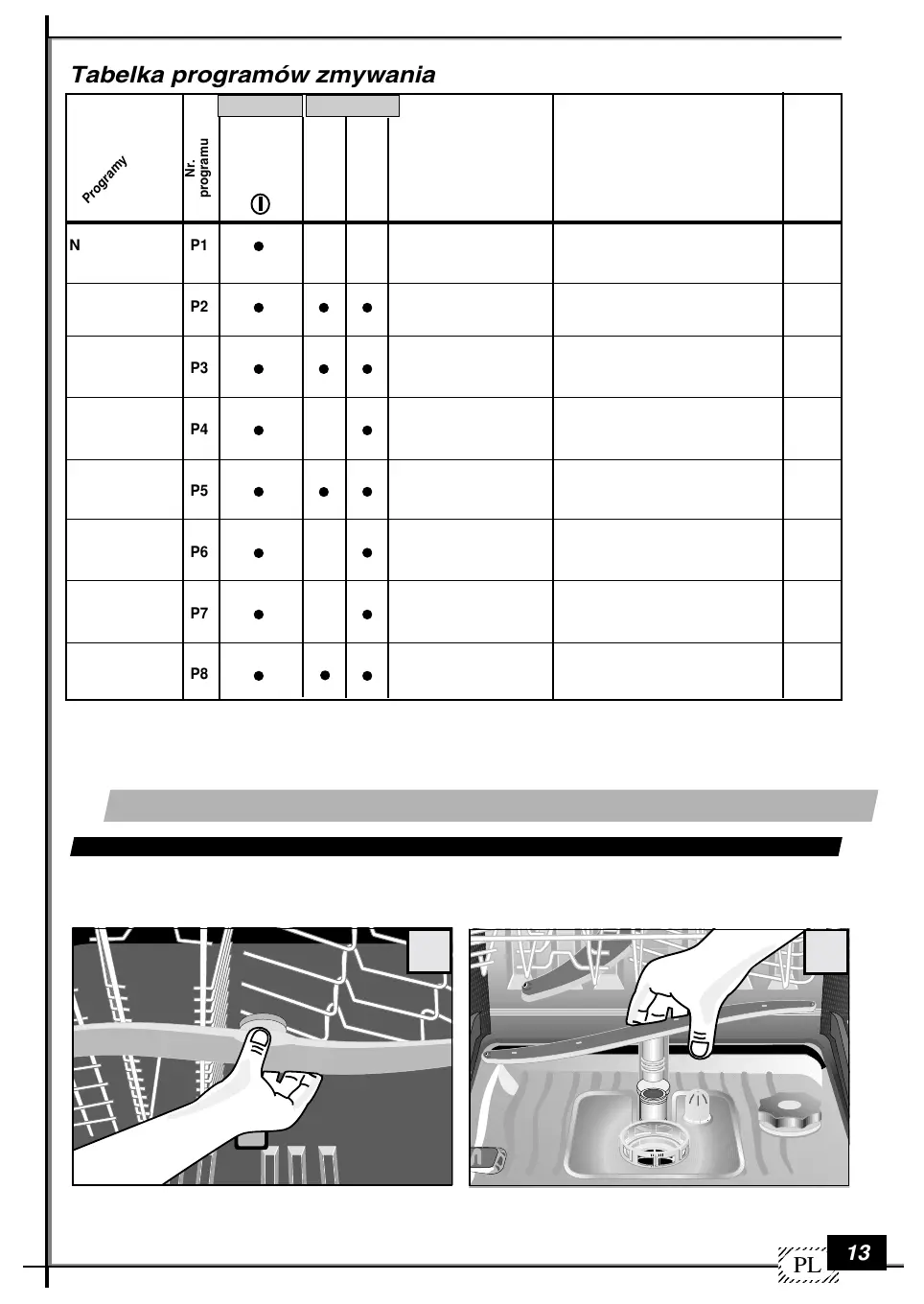 (*) W programie P1 jest możliwe włączenie ustawienia suszenia (patrz rozdział opcje); w ten sposób uzyska się