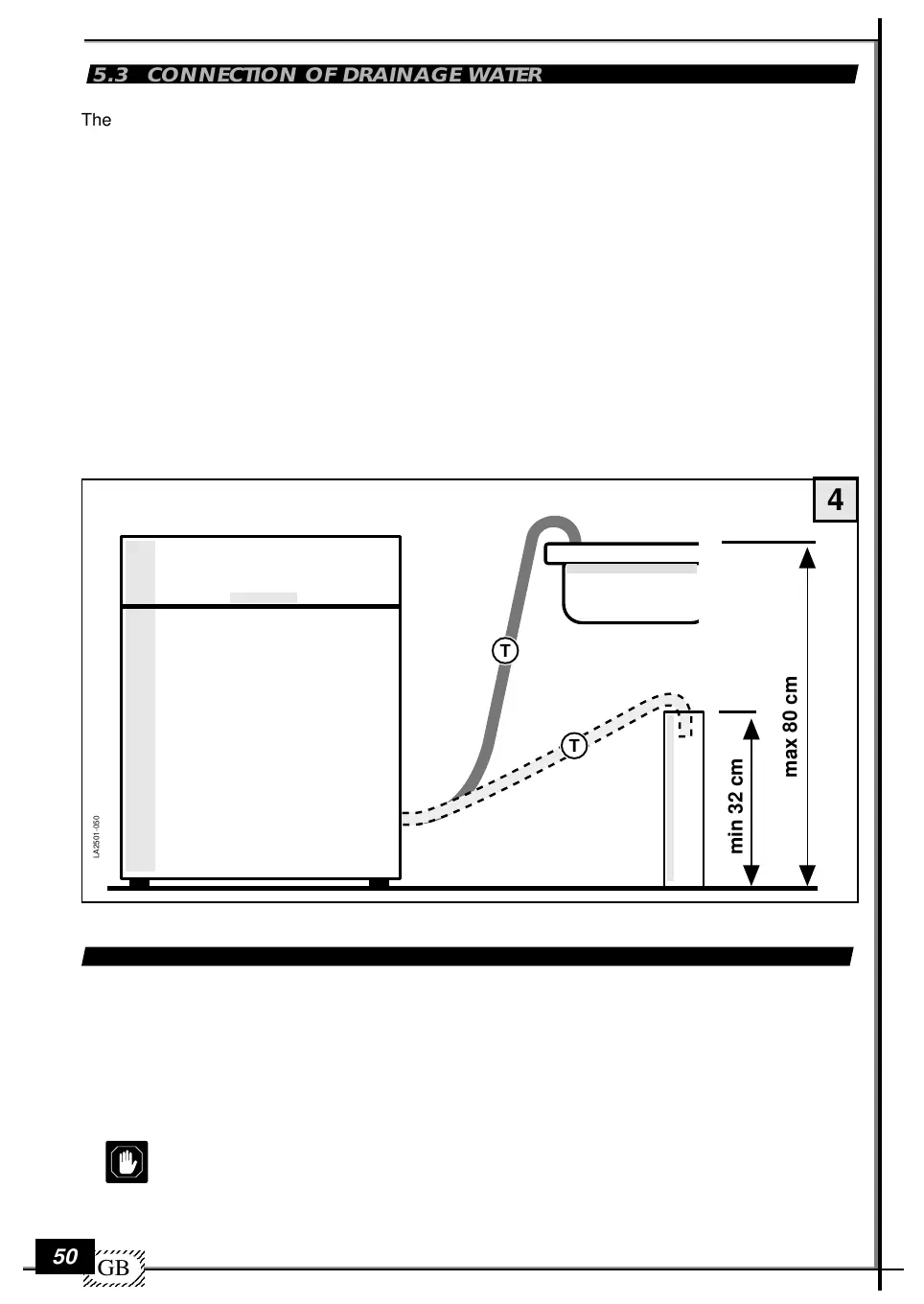 - the tube’s end, relative to the top surface of the dishwasher (fig. 4), must be placed at a height