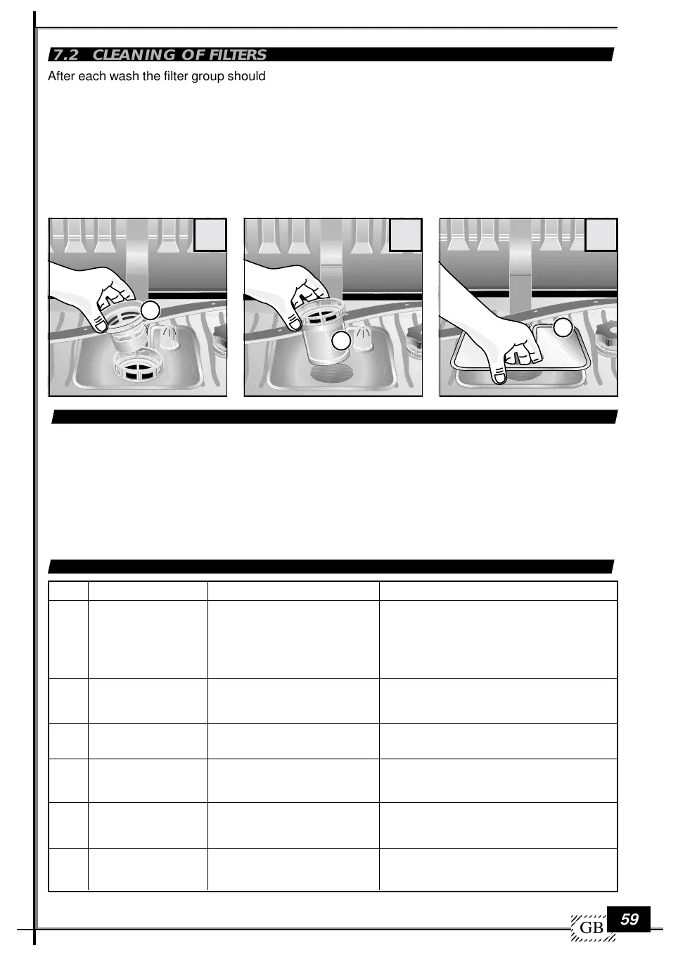 After each wash the filter group should be checked in order to remove possible dirt residues. Proceed