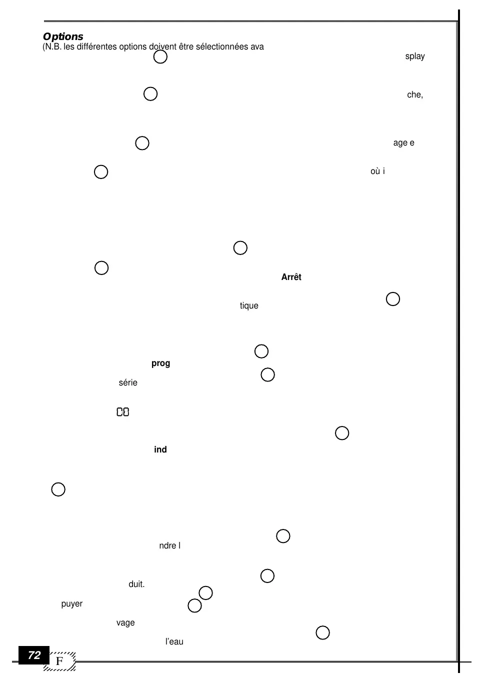 (N.B. les différentes options doivent être sélectionnées avant de mettre en marche le cycle de lavage)
