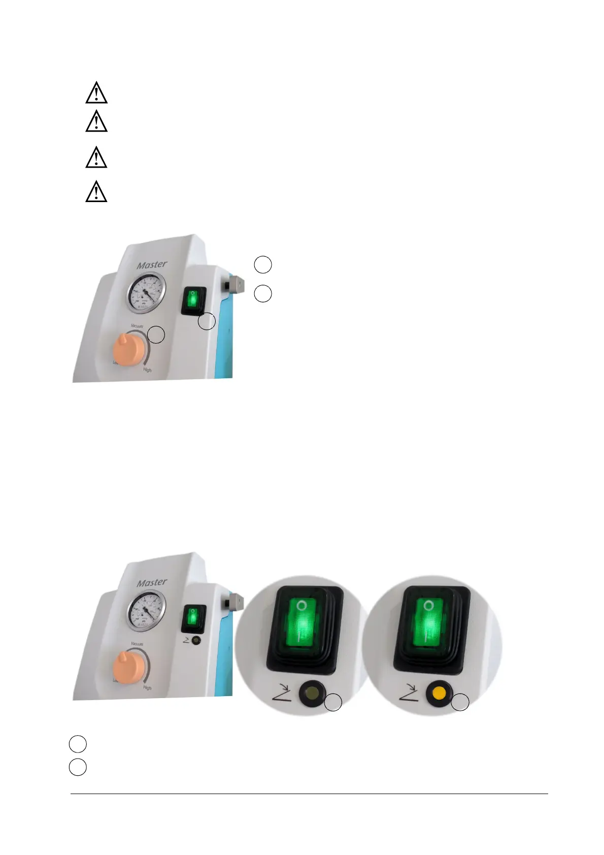 Als de oranje LED niet oplicht, is het pompaggregaat met de voetschakelaar ingeschakeld.