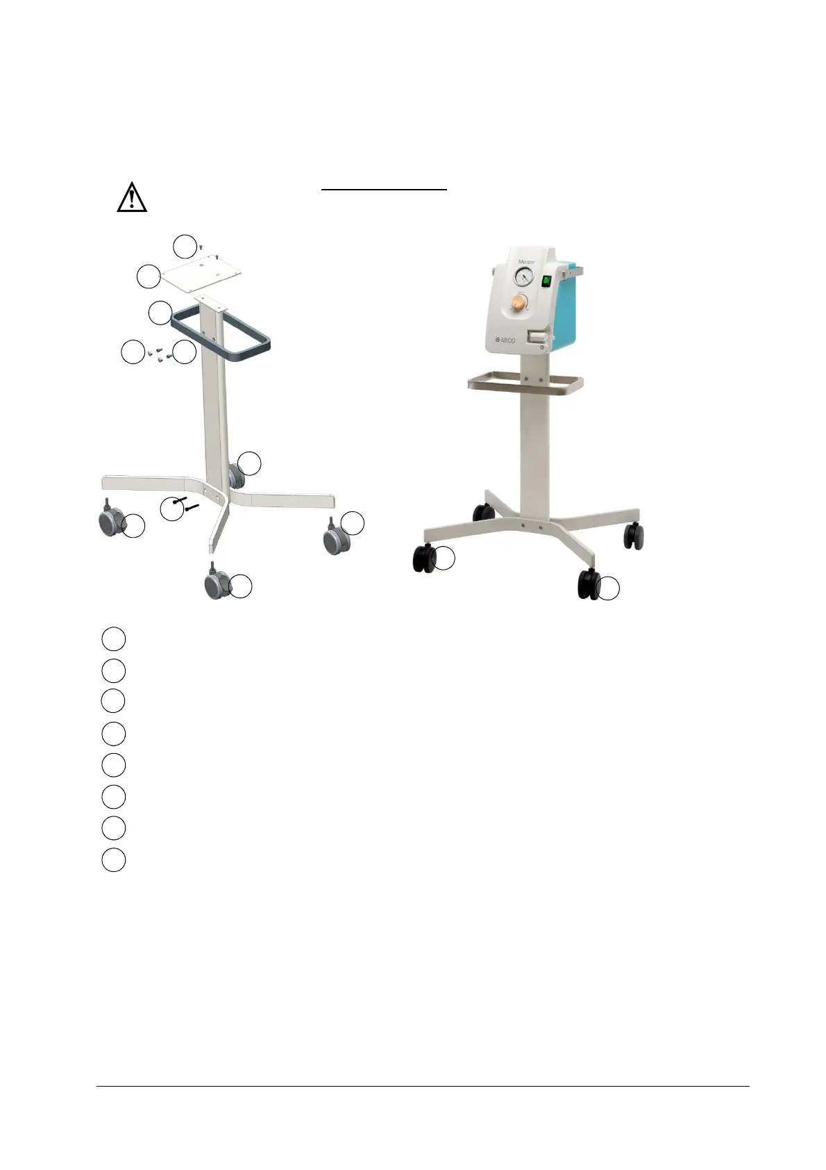 If the device is removed from the trolley, the rubber feet must be re-attached