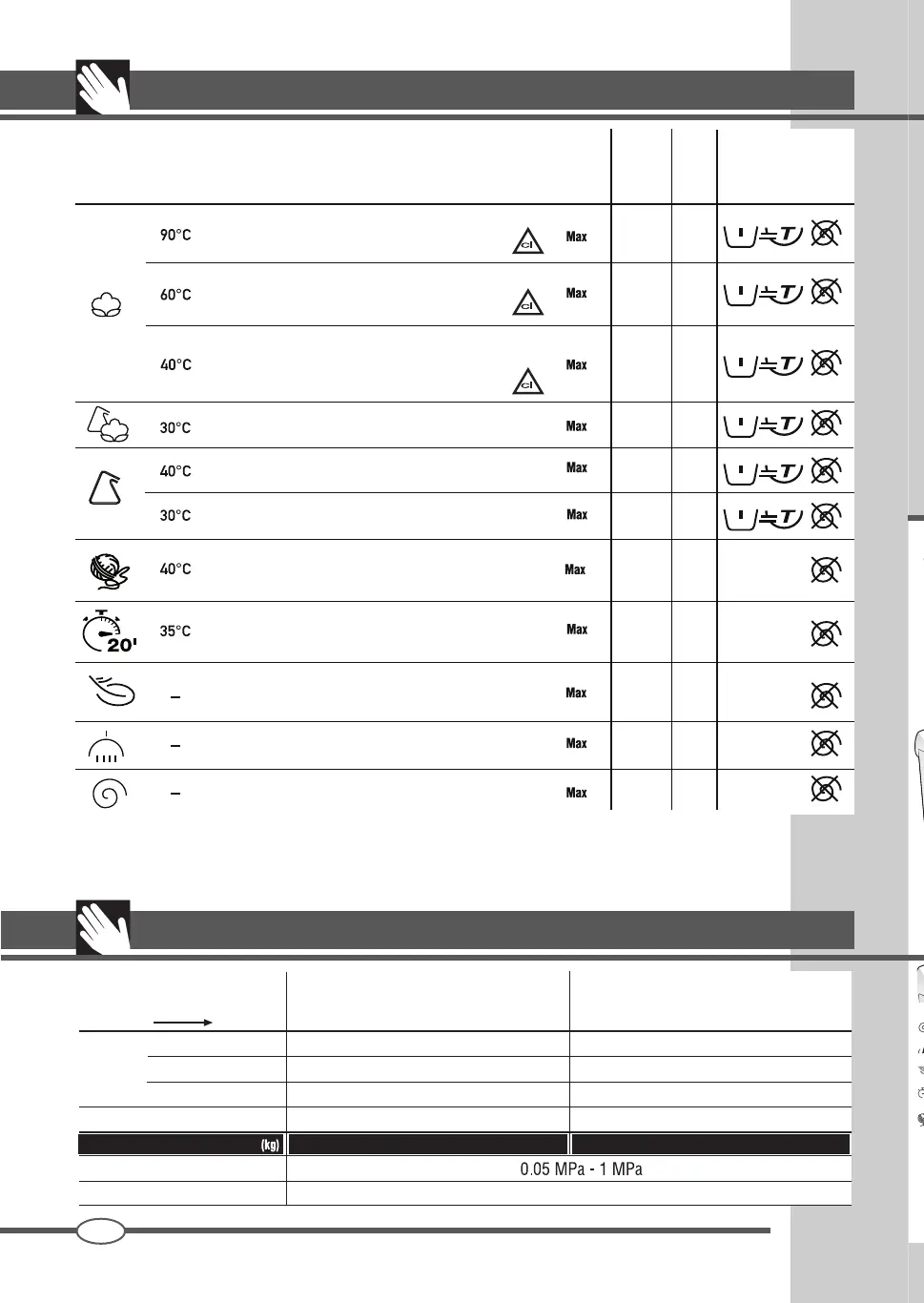 appropriées pour le lavage dans le lave-linge.