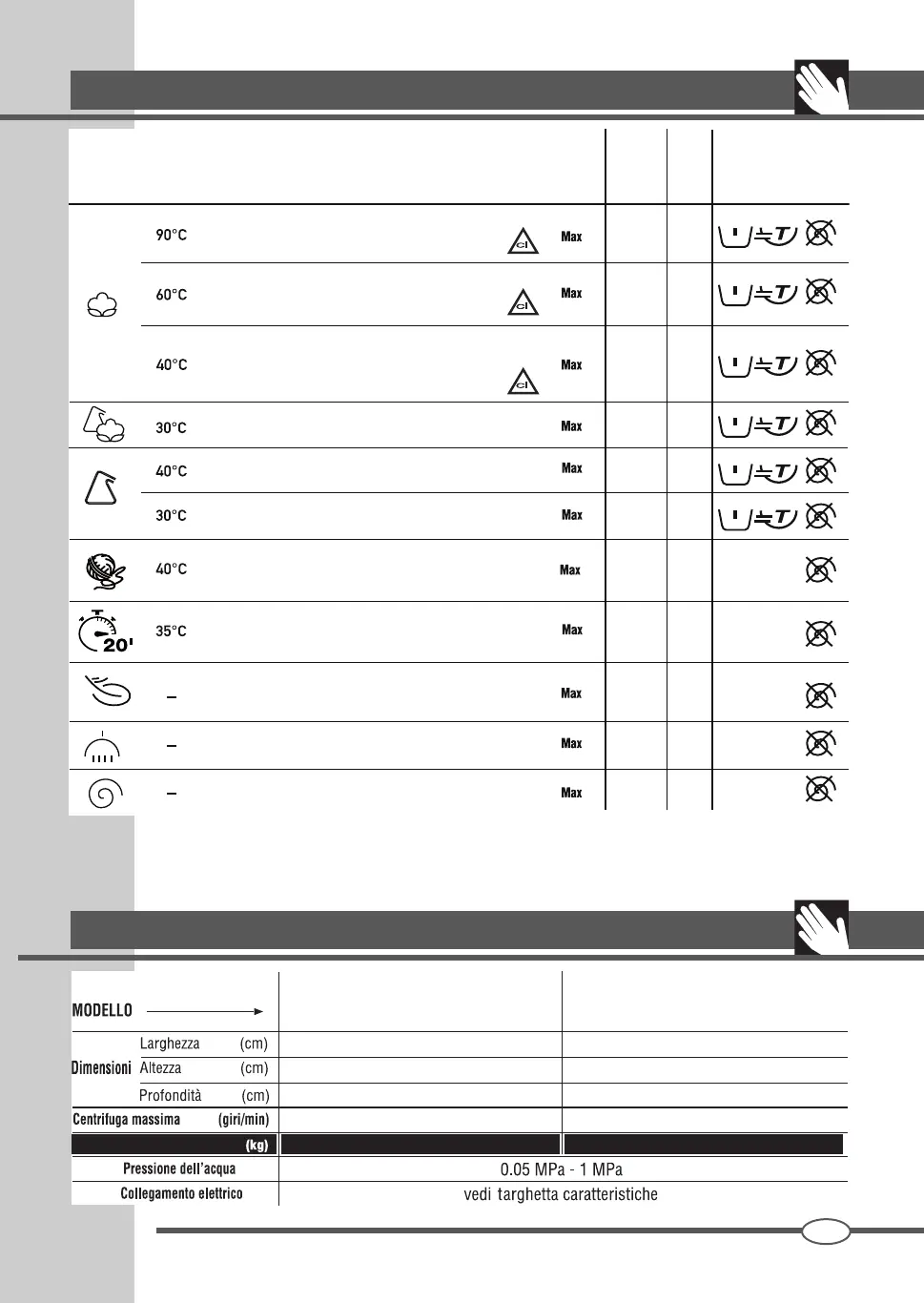 (*) La reale temperatura dell’acqua può differire da quella indicata nel programma.