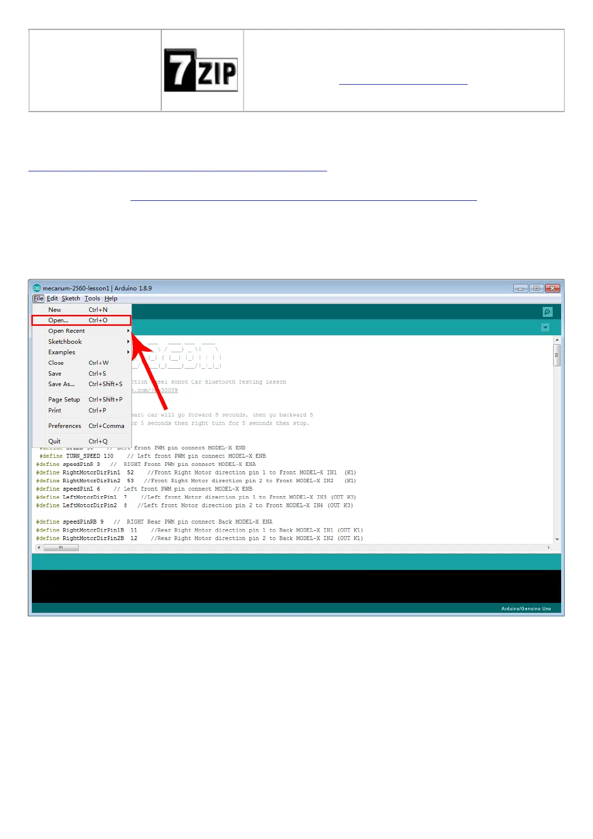 Step 2: Download https://osoyoo.com/driver/mecanum/mecanum-2560-lesson1.zip, unzip the