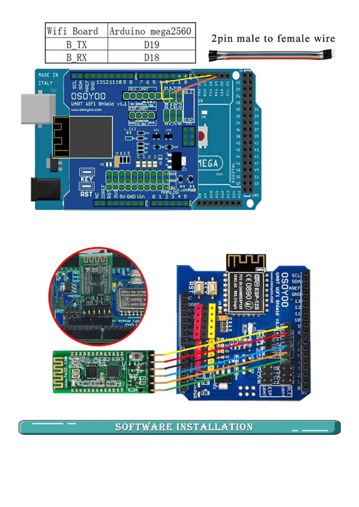 Bluetooth Module should be inserted into bluetooth 6-pin slot in OSOYOO Wifi Board