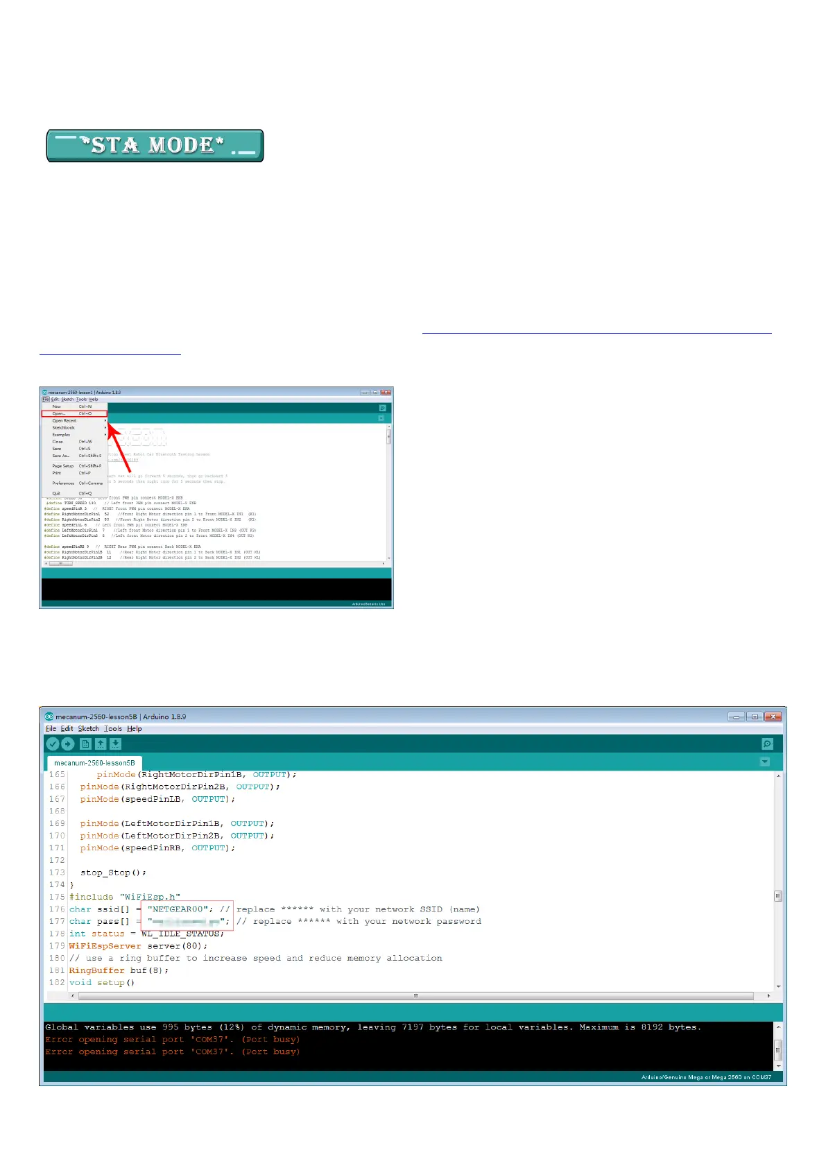 (1) Please download STA mode sketch code from https://osoyoo.com/driver/mecanum/mecanum-