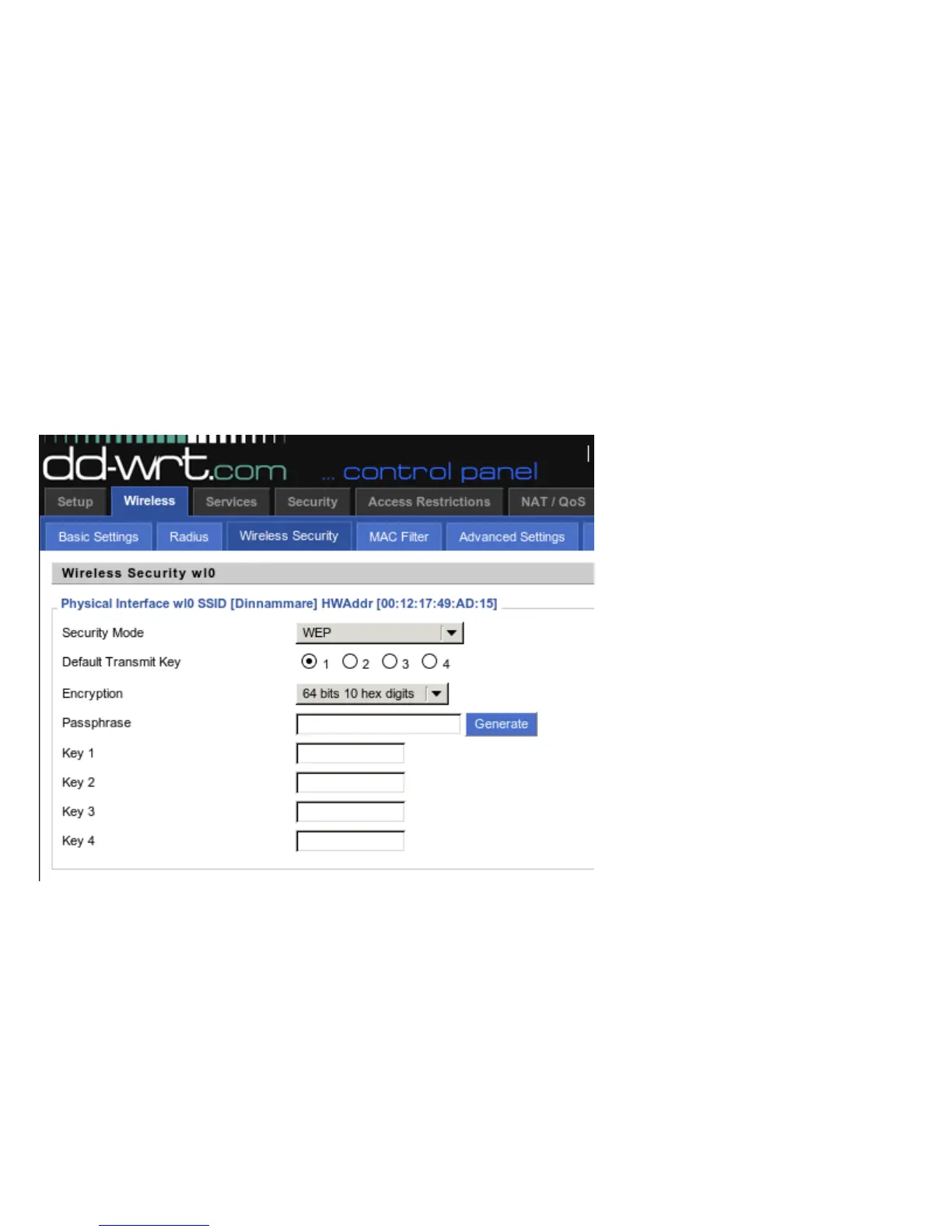 Your router will most likely have a settings dialog similar to the one below for generating the WEP