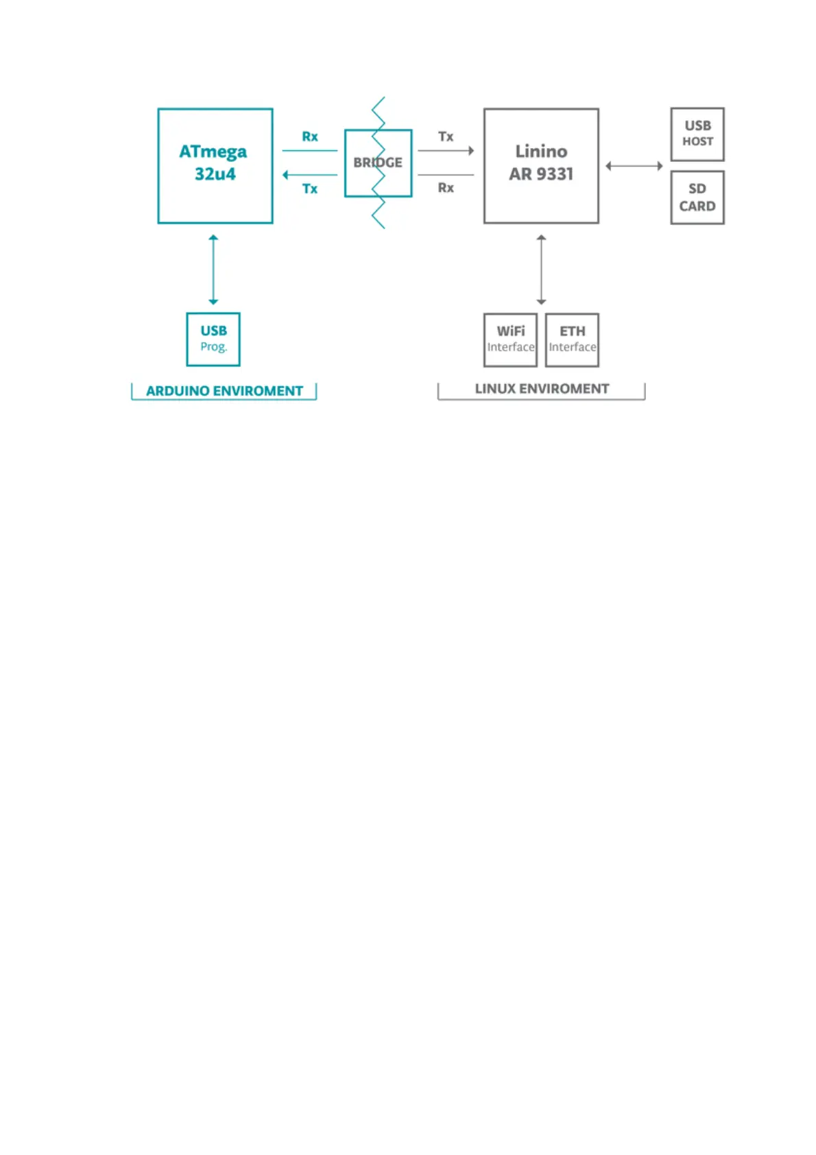 The WiFi and Ethernet interfaces, USB host, and SD card are all connected to the AR9331. The