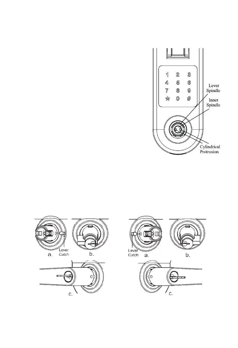3.5 Put lever on Lever Spindle (see fig. 7c, 8c). The lever