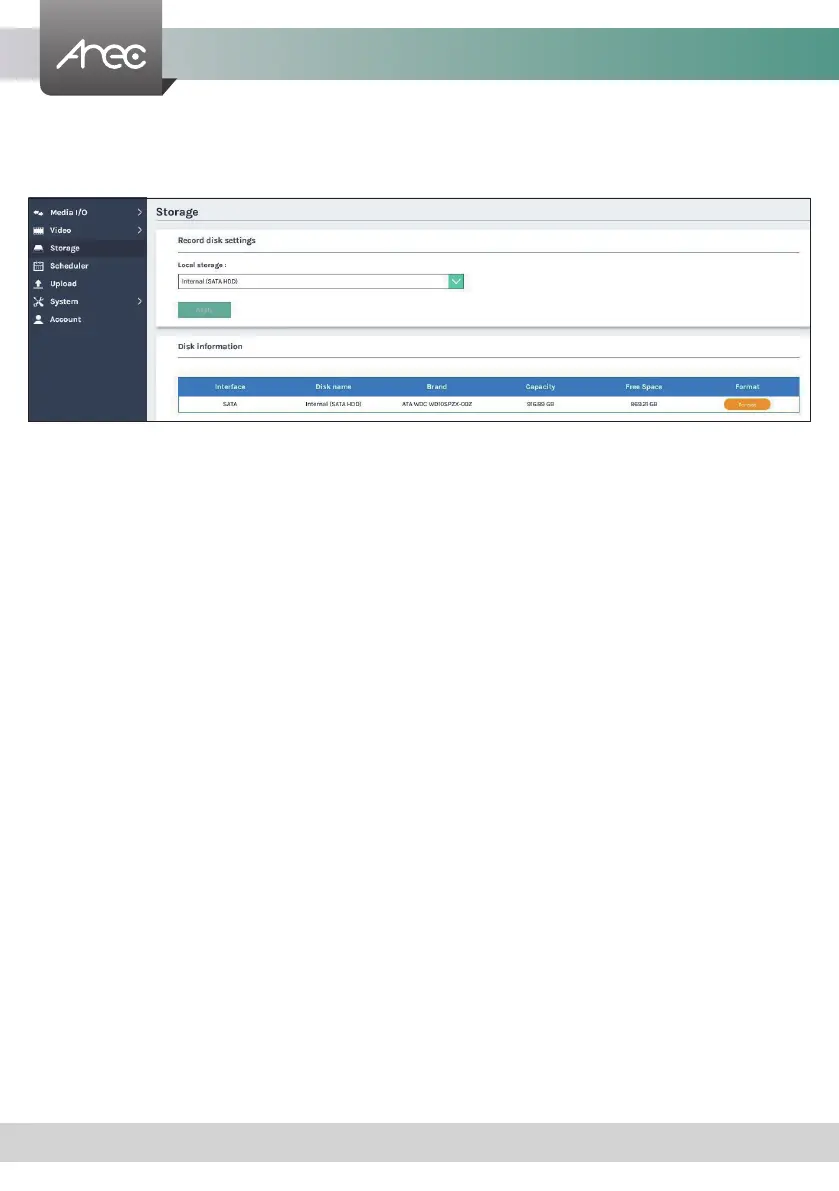 Disk information- Displays disk information, available storage space and total capacity. Click “Format” to clean up the