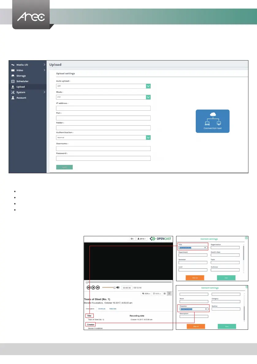 Followings to be congured according to the upload destination.