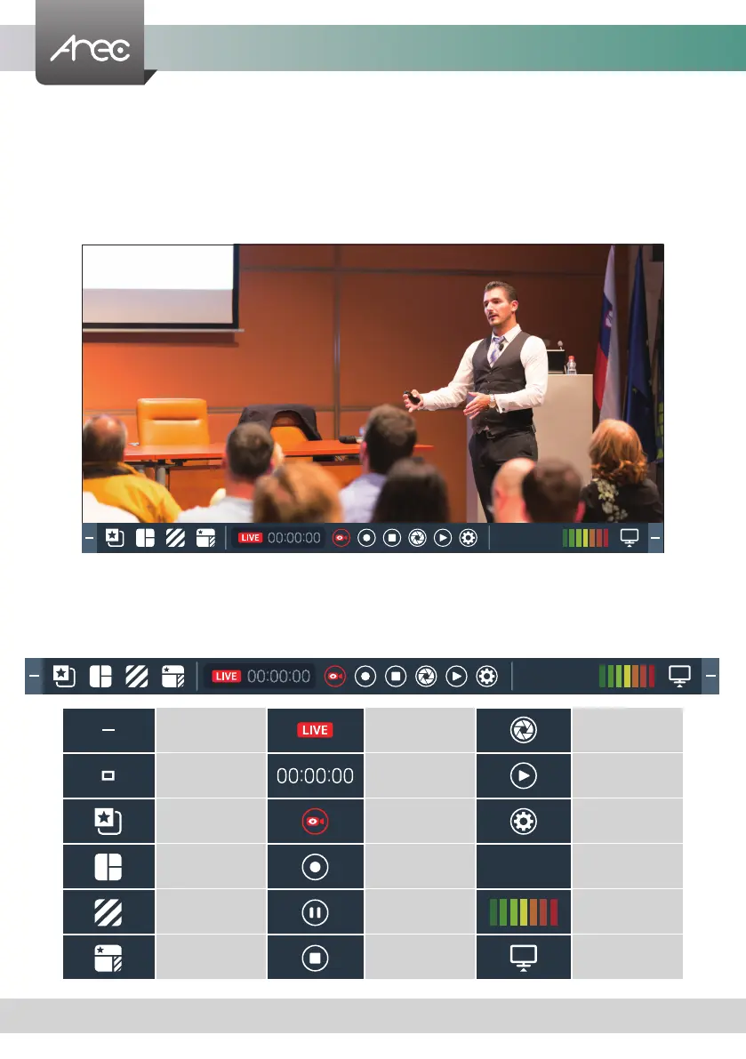 to control recording and have a live stream view on the display. This director control panel makes it easy to apply layout,