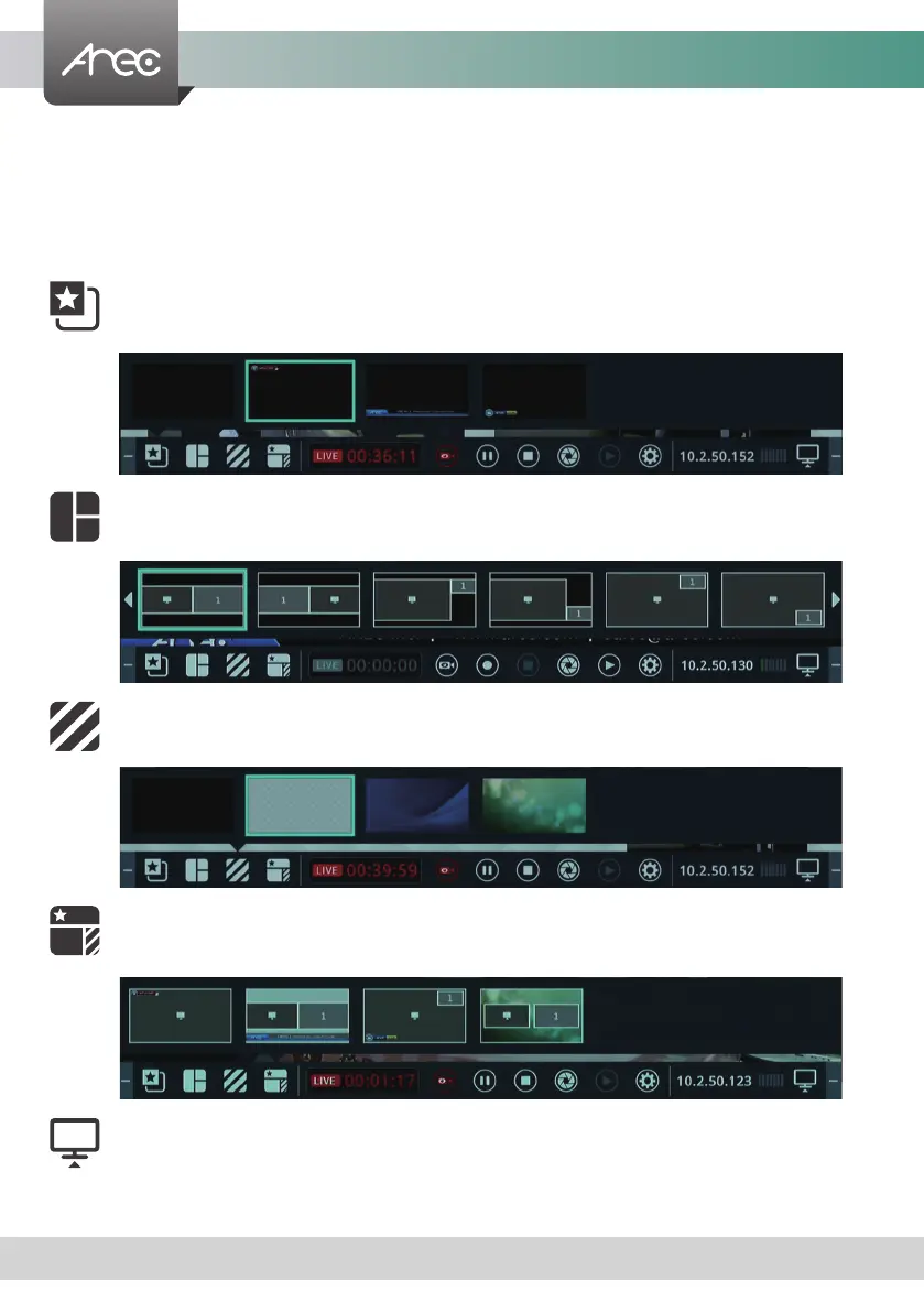 There are ve buttons for quickly switching recording overlay, layout, background, theme and display.