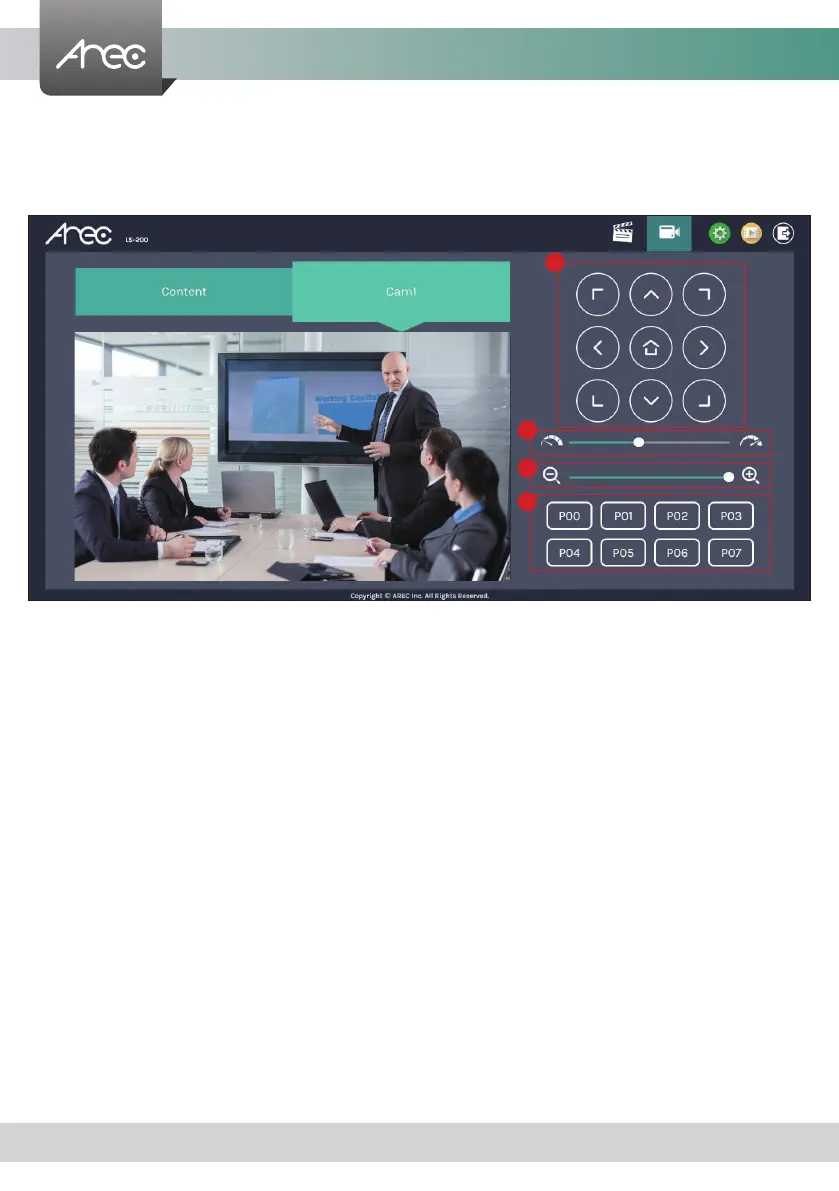 4. Preset positions: Click the buttons to command that the camera go to the preset position.