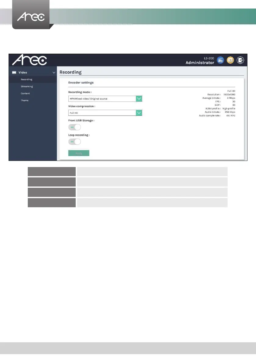 Recording Congure Encoder settings and Bookmark settings for recording.