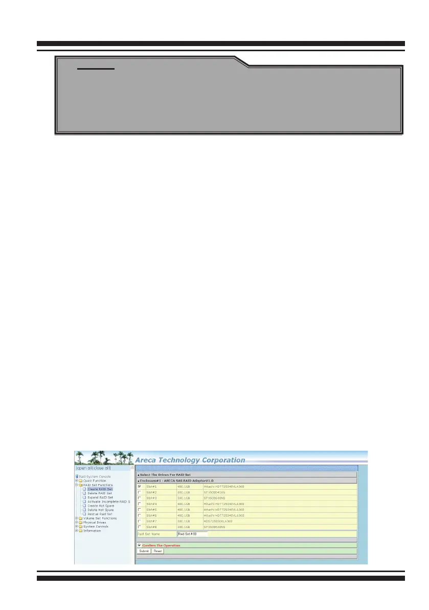 “Raid Set Function” to manually congure the RAID set for the rst