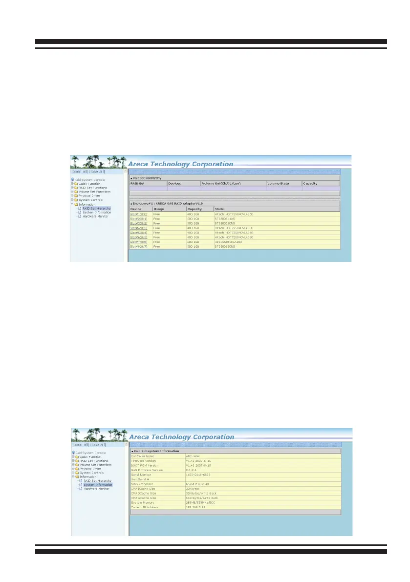 mation” link. The SAS RAID controller “RAID Subsystem Informa-