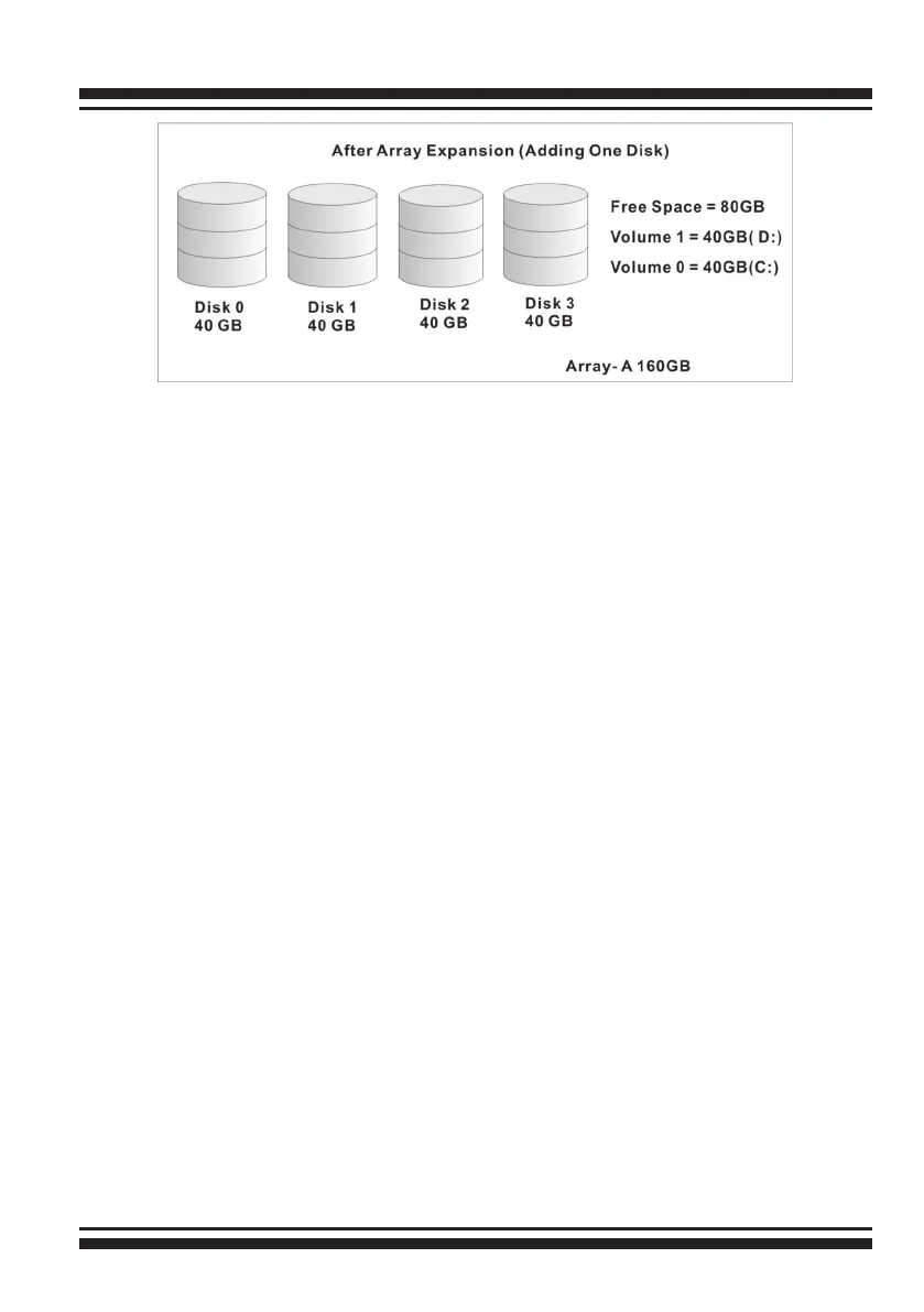 recongured for a higher RAID level without adding a disk.