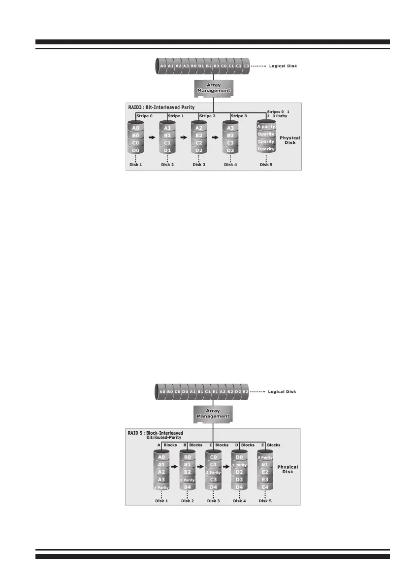 disk. If one drive in the system fails, the parity information can