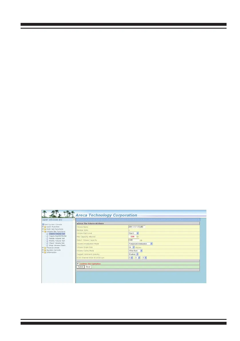 to the main menu and click on the “Create Volume Set” link. The