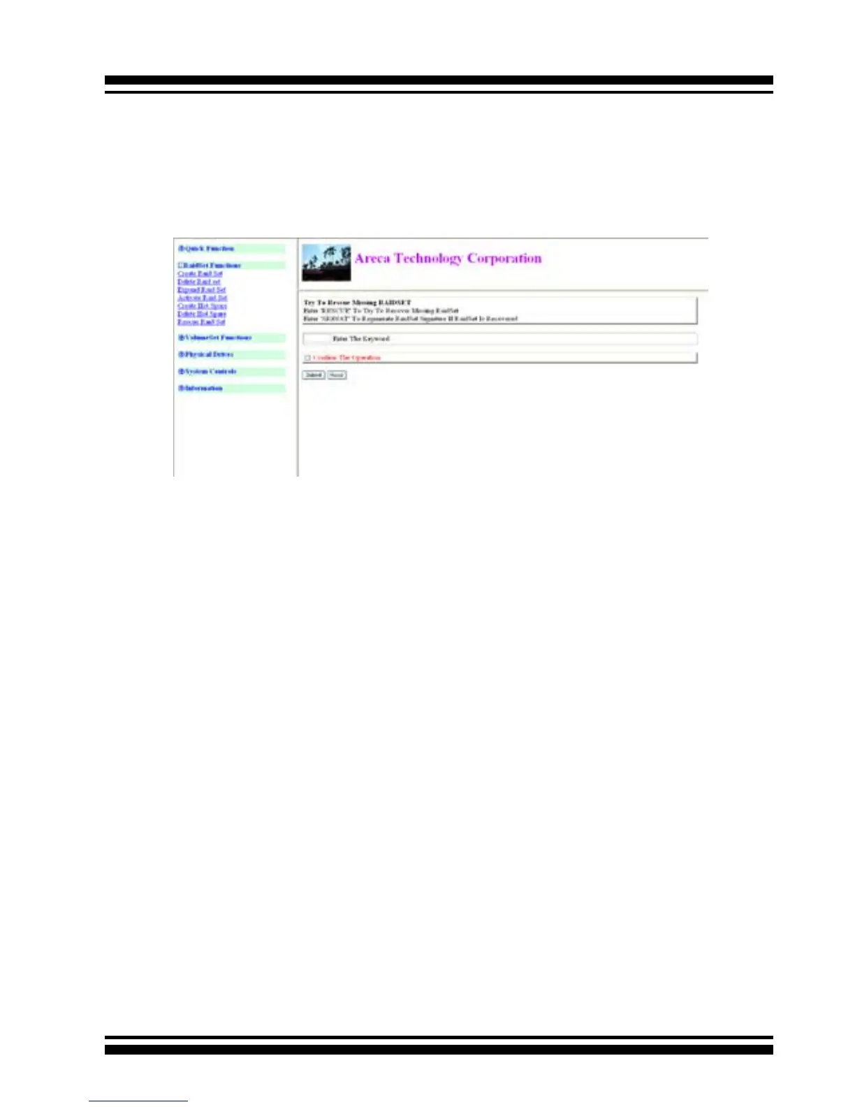 The “RESCUE” function can recover the missing RaidSet informa-
